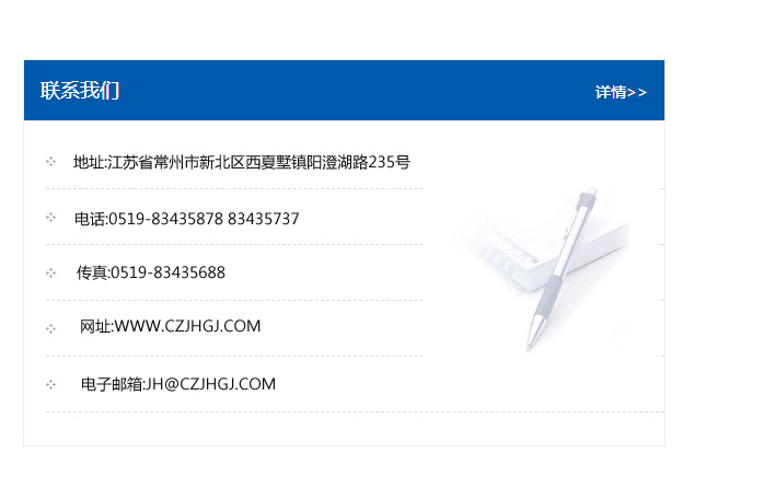 地址:常州市新北區友邦商務大廈1幢16、17層  電話:0519-85101652  傳真:0519-85112595  郵編:213022  網址:www.cz-jiayue_cn.xunzhenggroup.com  郵箱:xiajifengaa@163.com